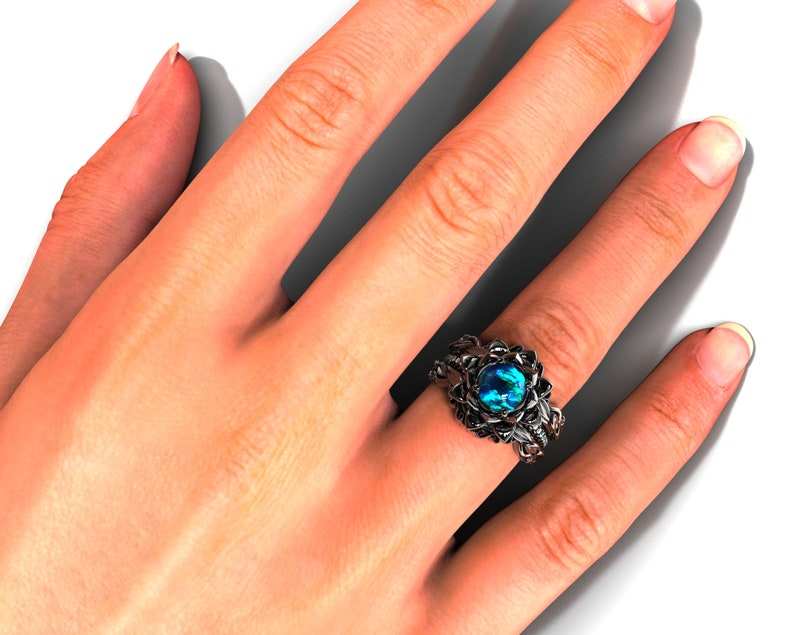 Black Opal Engagement Ring 925 Sterling Silver Natural Opal Diamond Accent Black Gold Finish Elegant Religious Gift for Her