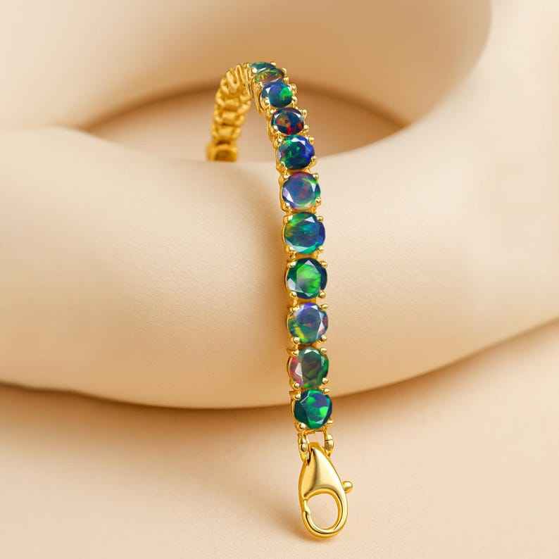 Black Opal Luxury Tennis Bracelet 925 Sterling Silver 14K Gold Plated GIA Certified Fire Round Gemstone Jewelry