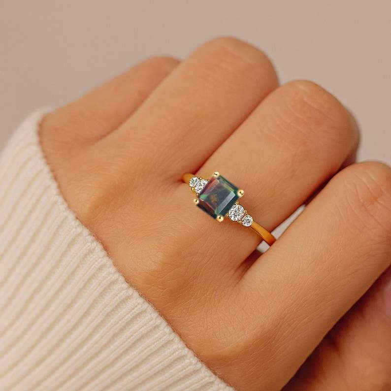 Keyword:Black Opal 925 Sliver Made With multi fire Black Opal Ring