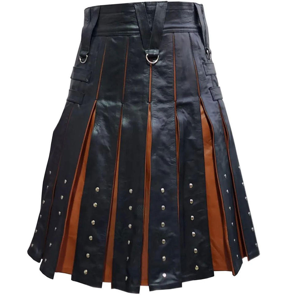 Black & Orange Leather Hybrid Utility Kilt – Gothic Steampunk Men’s Highland Wear