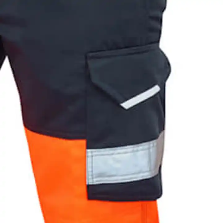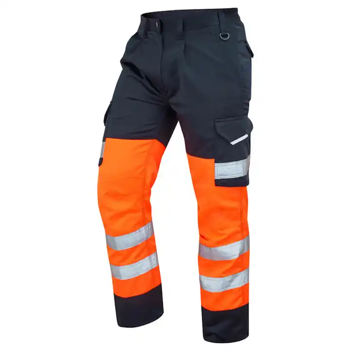Black Orange Reflective Breathable Cargo Work Pants Hi Vis Industrial Safety Trousers Durable Polyester CE Certified Men's