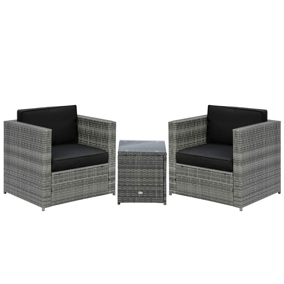 Black Outdoor PE Rattan Wicker Patio Bistro Set with Washable Cushion Coffee Table for Conversation Sofa