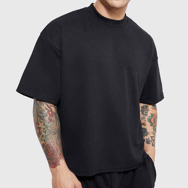 Oversized Black Heavy Cotton T-Shirt for Men Boxy Crop Streetwear Style Long 100% Cotton Customizable DTG OEM Manufacturer