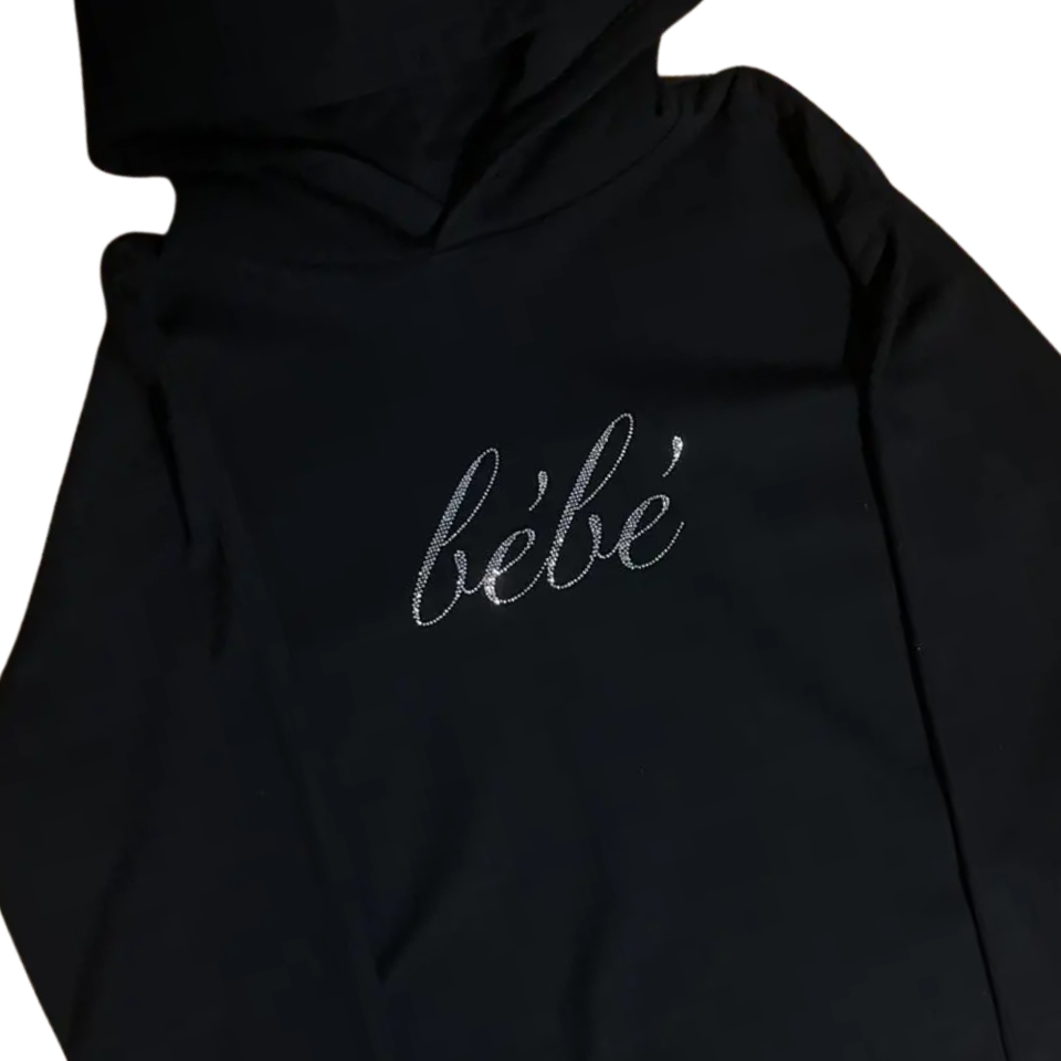 Black Oversized Hoodie With Rhinestone Anime Character Print Streetwear Unisex Heavy Cotton Pullover Hip Hop Winter Fashion Sale