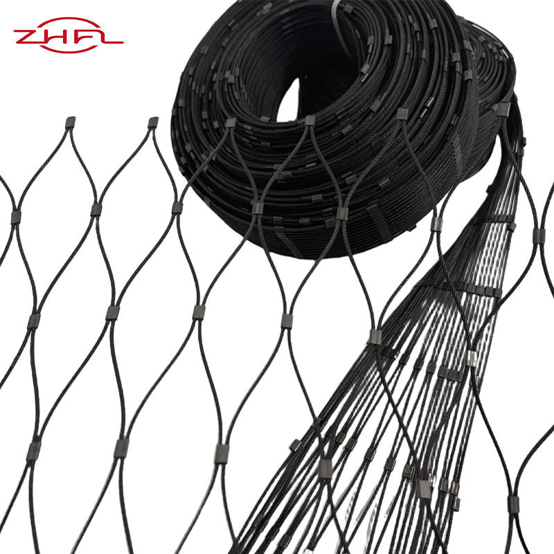 Black Oxide Stainless Steel Rope Netting Plain Weave Woven Construction Safety Fence Zoo Bird Wildlife Enclosures