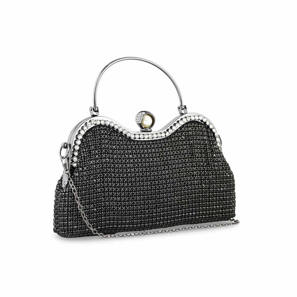 Black PU Bowling Bag with Zipper Elegant Evening Bags