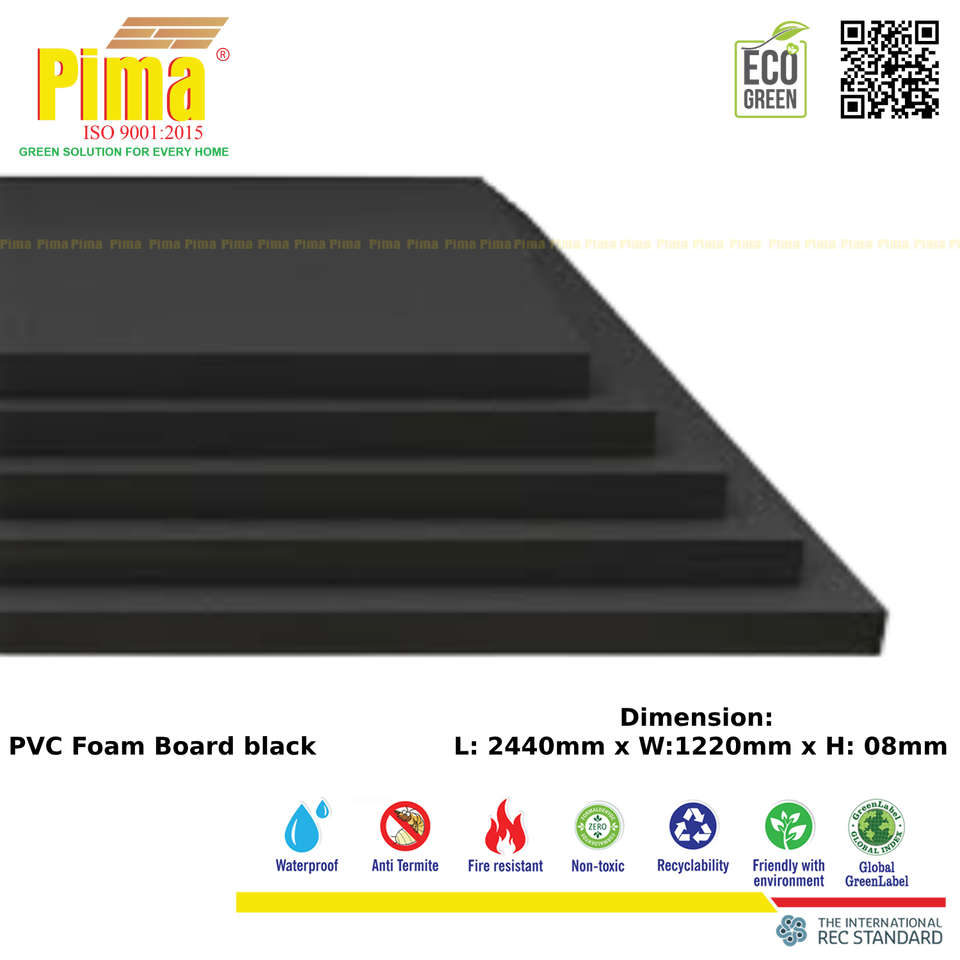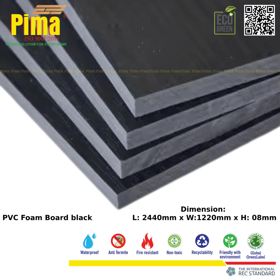 Black PVC-WPC Foam Board Sheet 8mm Thickness 0.6 G/cm3 Density Decorative Plastic Wall Panels for Interior Cabinets Kitchen