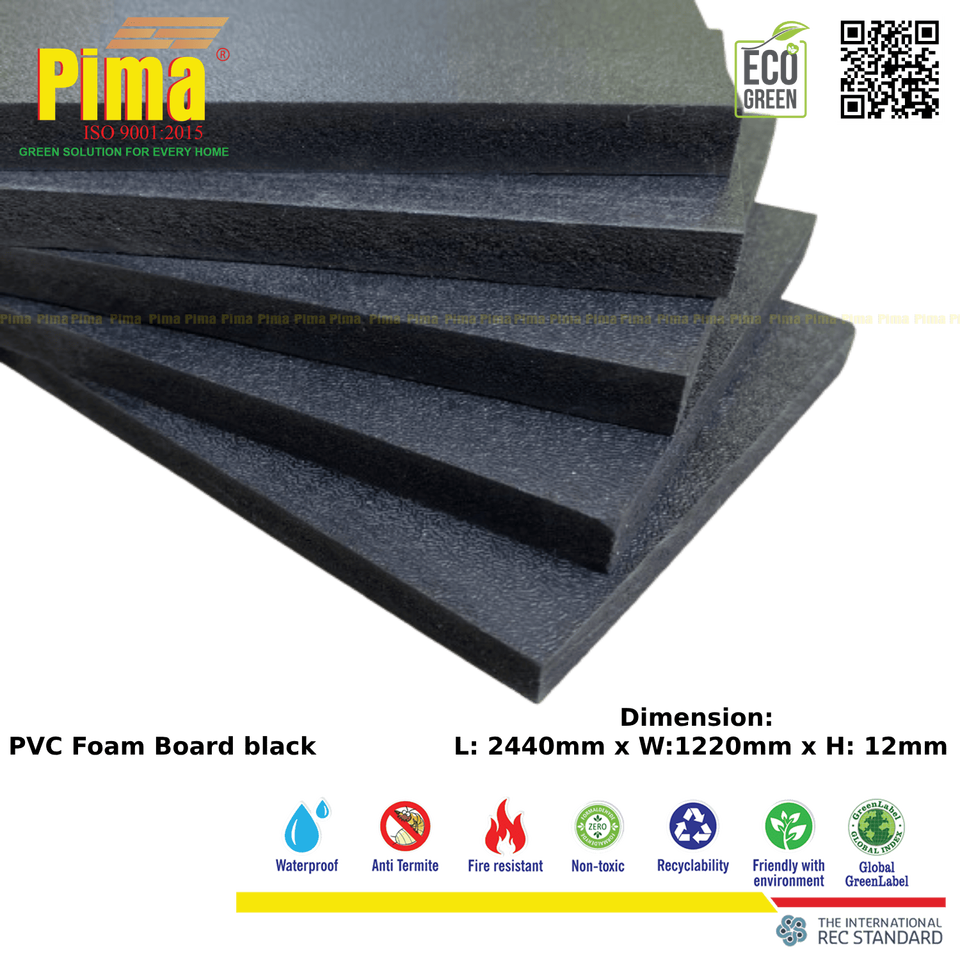 Black PVC-WPC Foam Board Sheet 12mm Thickness 0.6 G/cm3 Density Waterproof Material for Advertising Kitchen Wall Decor Cabinet