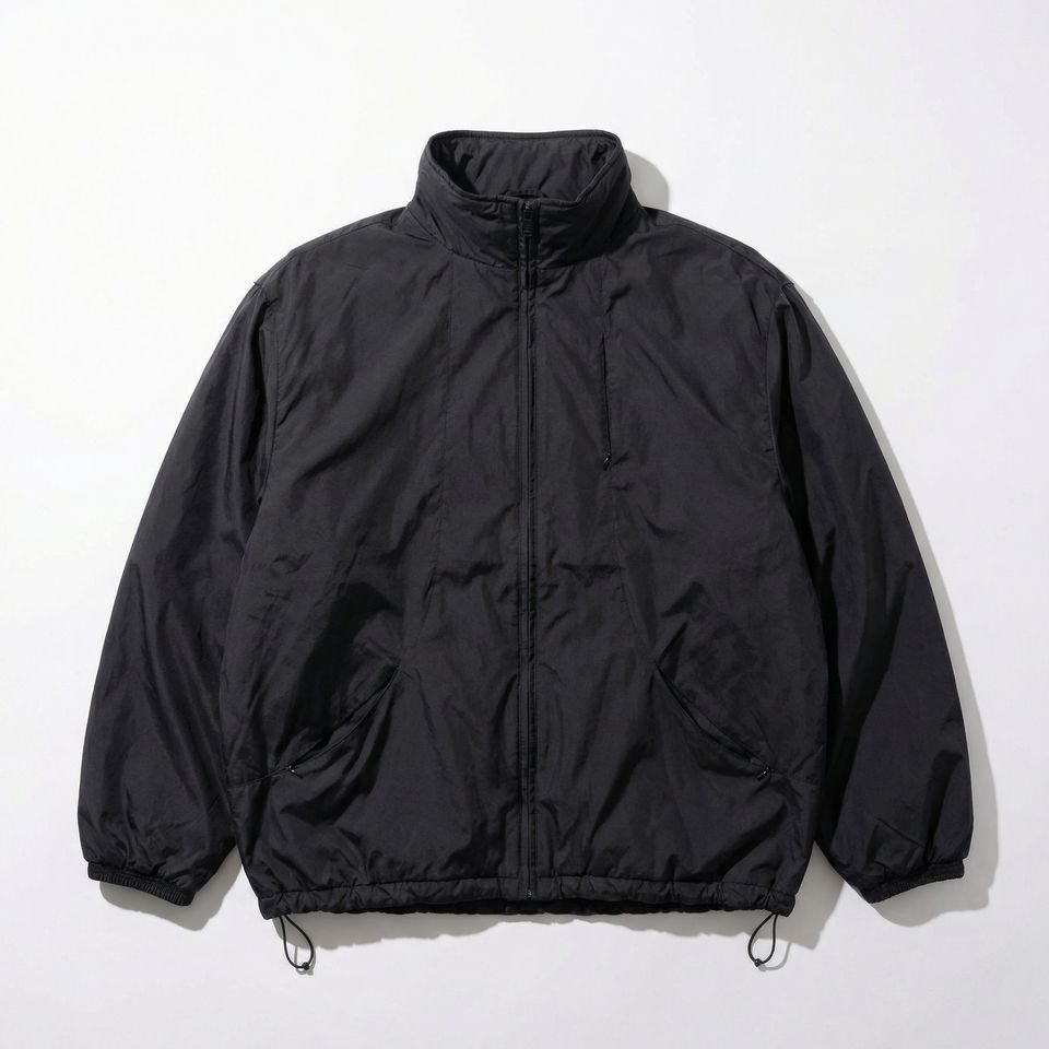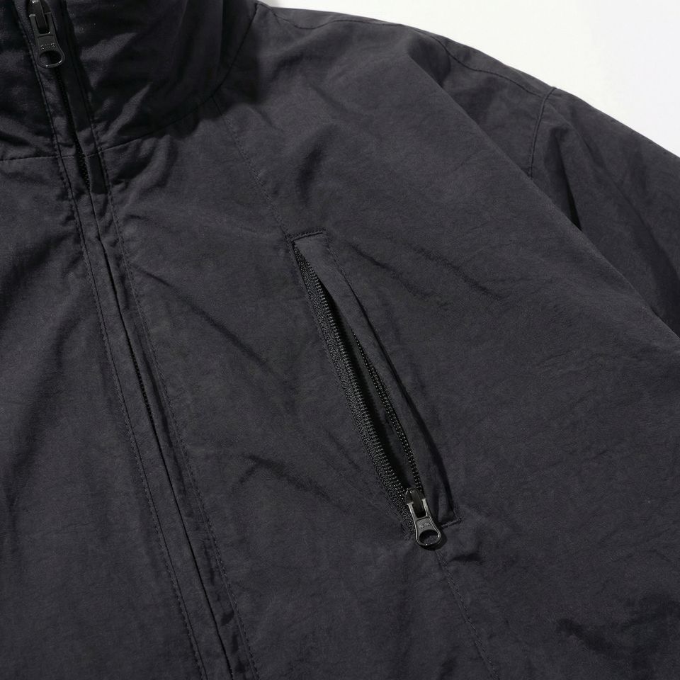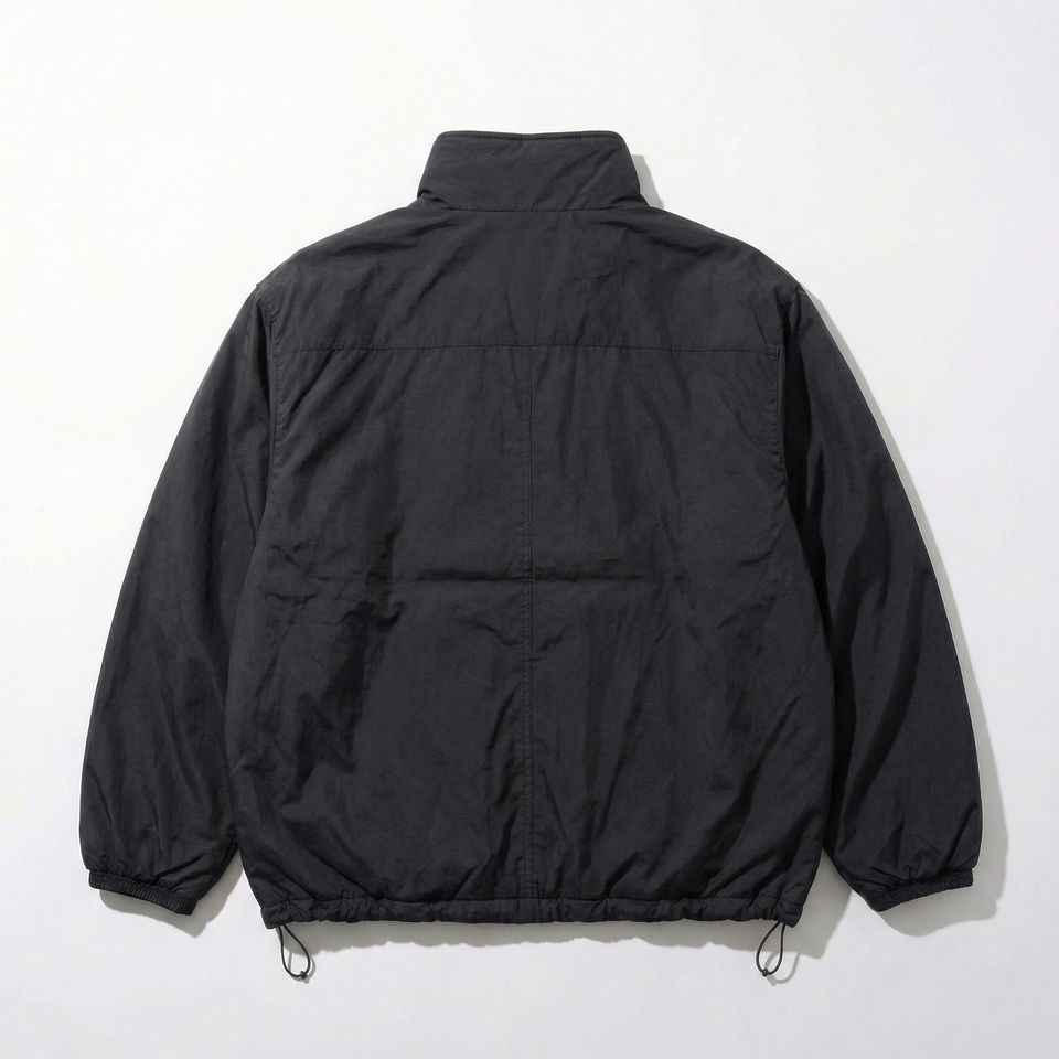 Black Packable Shell Jacket — Full‑Zip Windbreaker with High Collar, Elastic Cuffs & Drawcord Hem | OEM/ODM Private Label