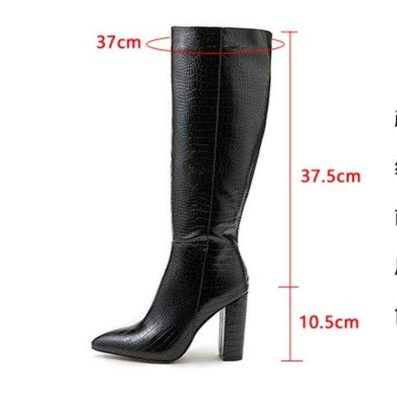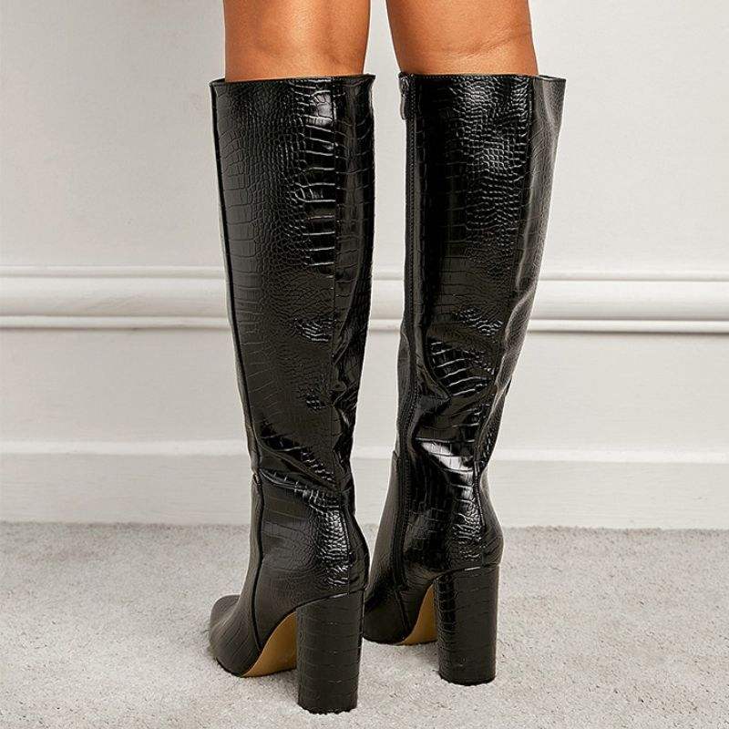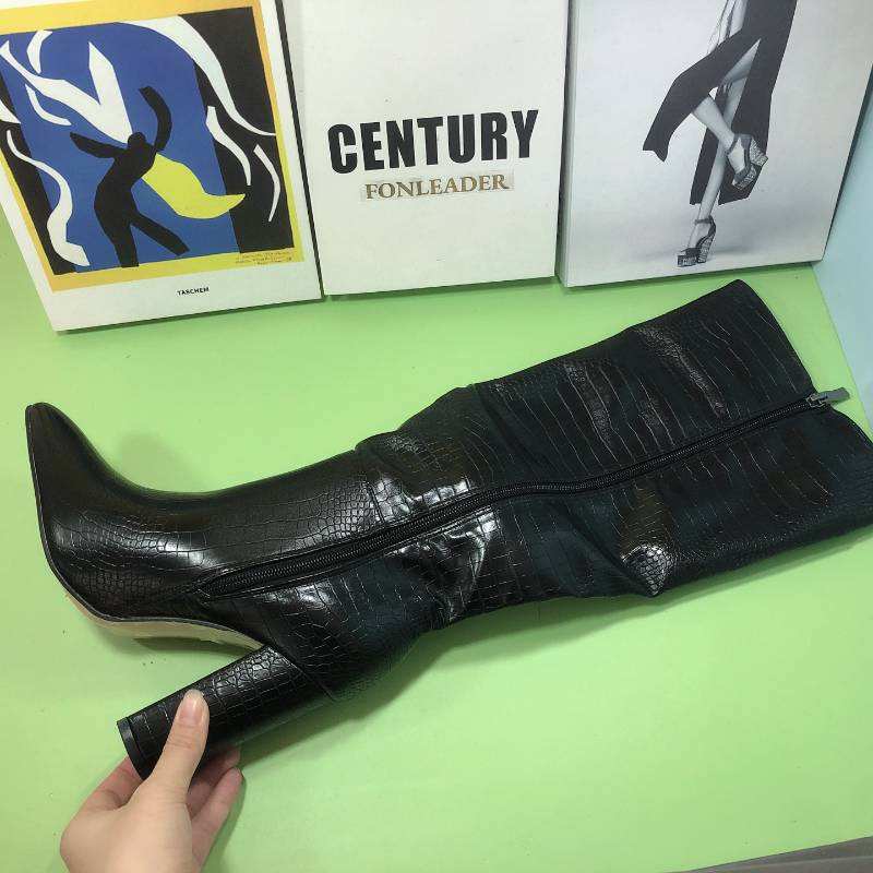 Black Pattern New Design High Quality Knee High Heel Boots for Woman
