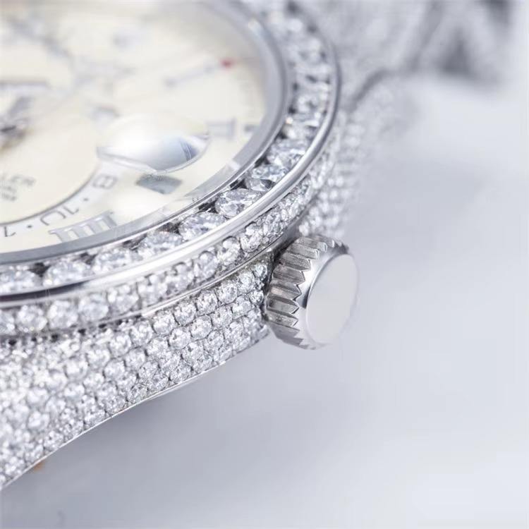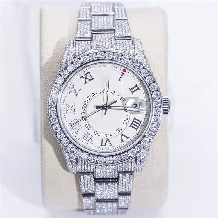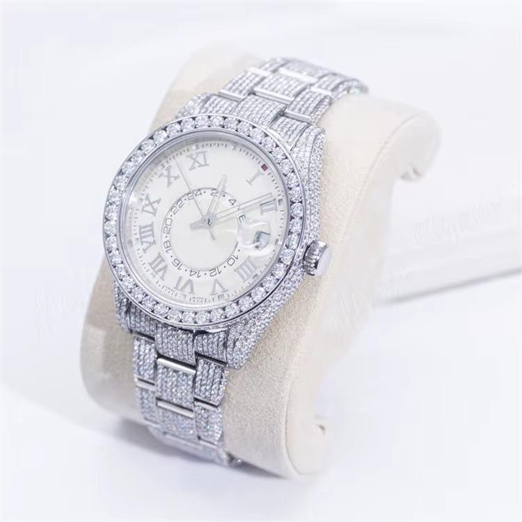 Black Pearl Jewels BPJ1193 41mm White Gold Dial Moissanite Diamond Mechanical Automatic Watch Glass Window Hidden Clasp Fully