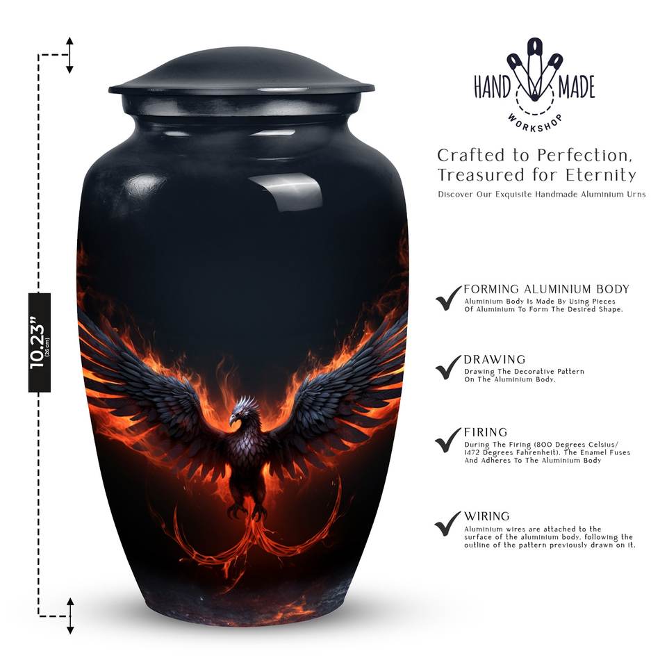 Black Phoenix Large Urn For Adult Ashes Funeral Cremation Urns For Male & Female Decorative Urn For Human Ashes Remains Ashes