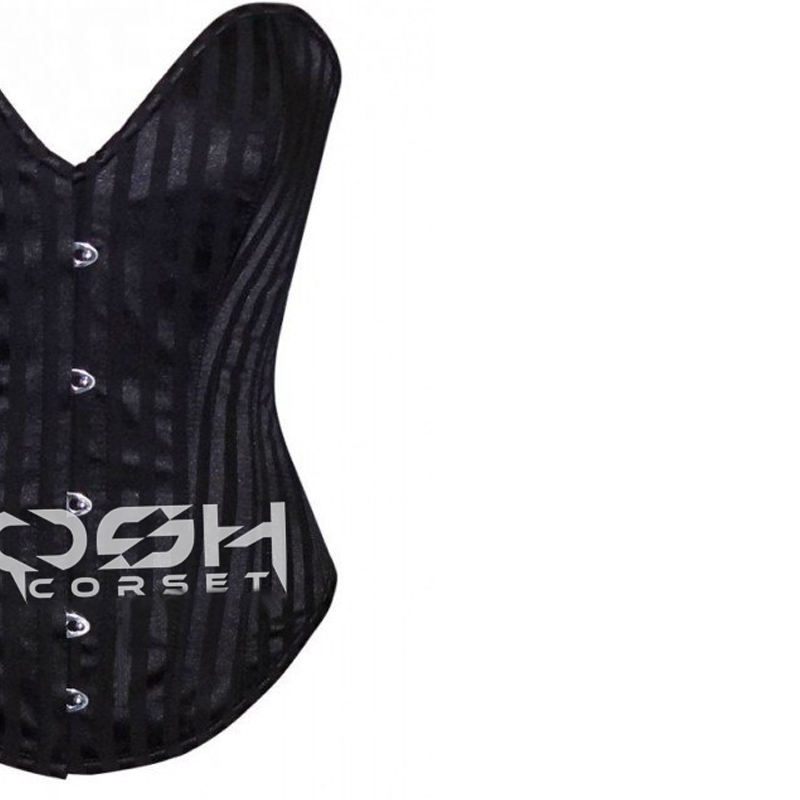 Black Pinstriped Brocade Overbust Corset Steel Boned Bustier Top With Deep Neckline | Corset Manufacturer OEM/ODM Available