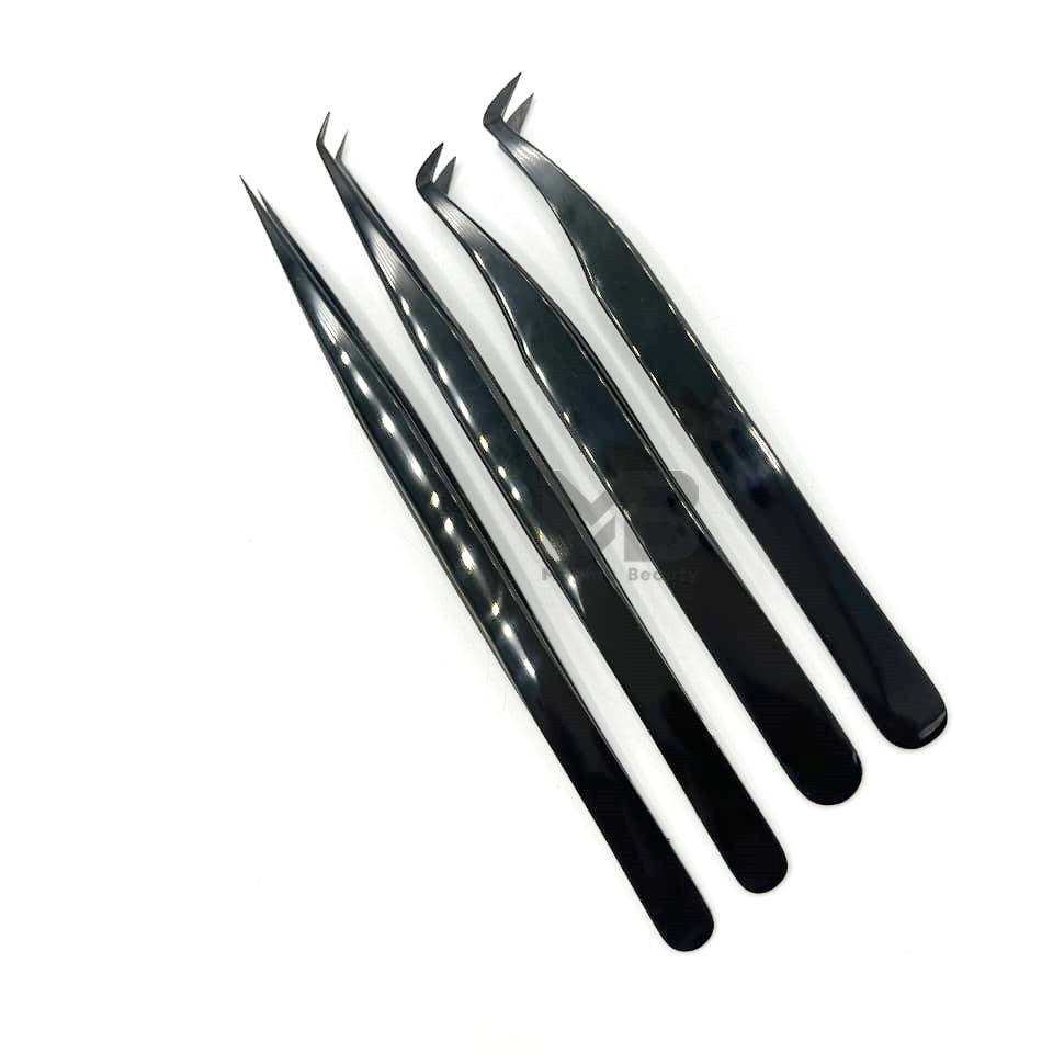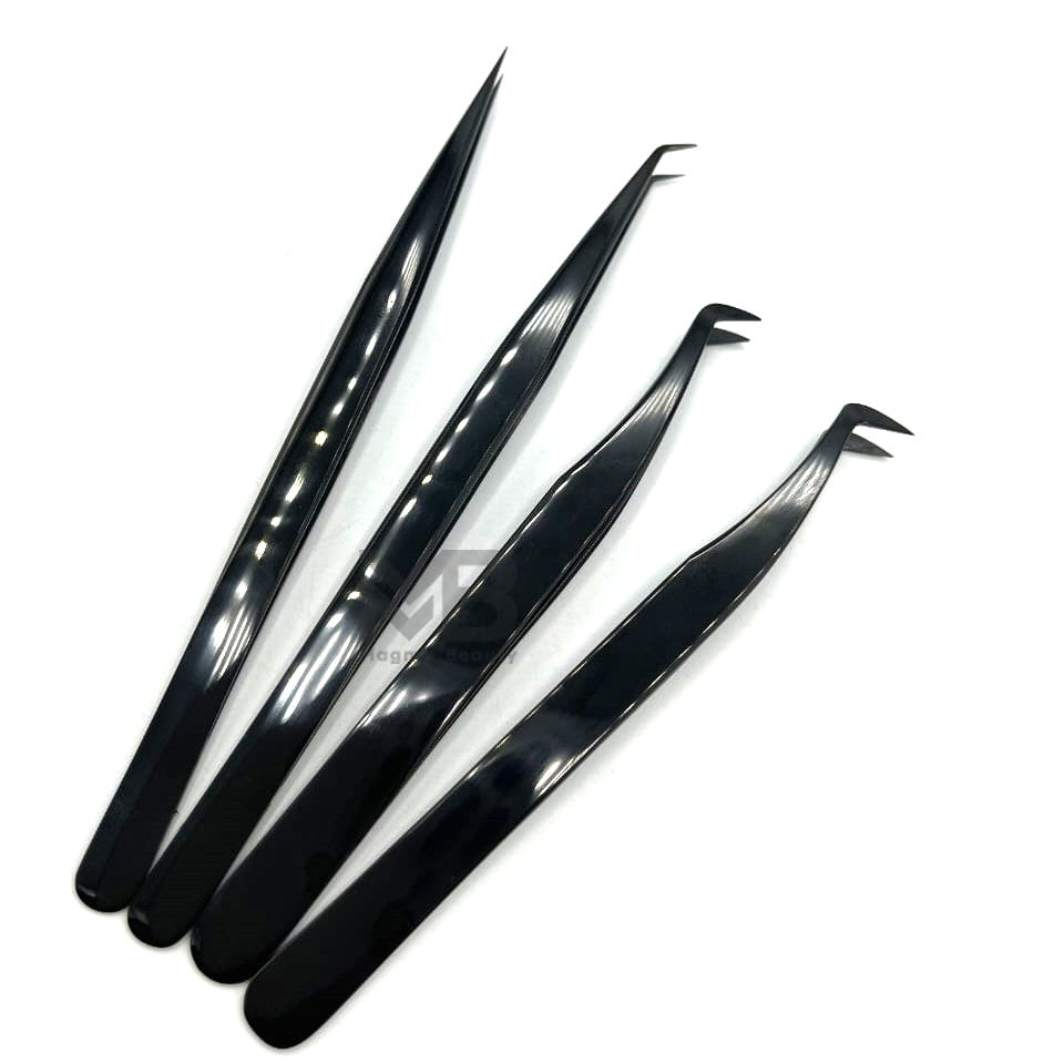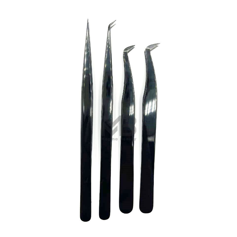 Black Plasma Color Coated Precision Durable Plain Grip Eyelash Extension Tweezers Japanese Stainless Steel Custom Brand Name