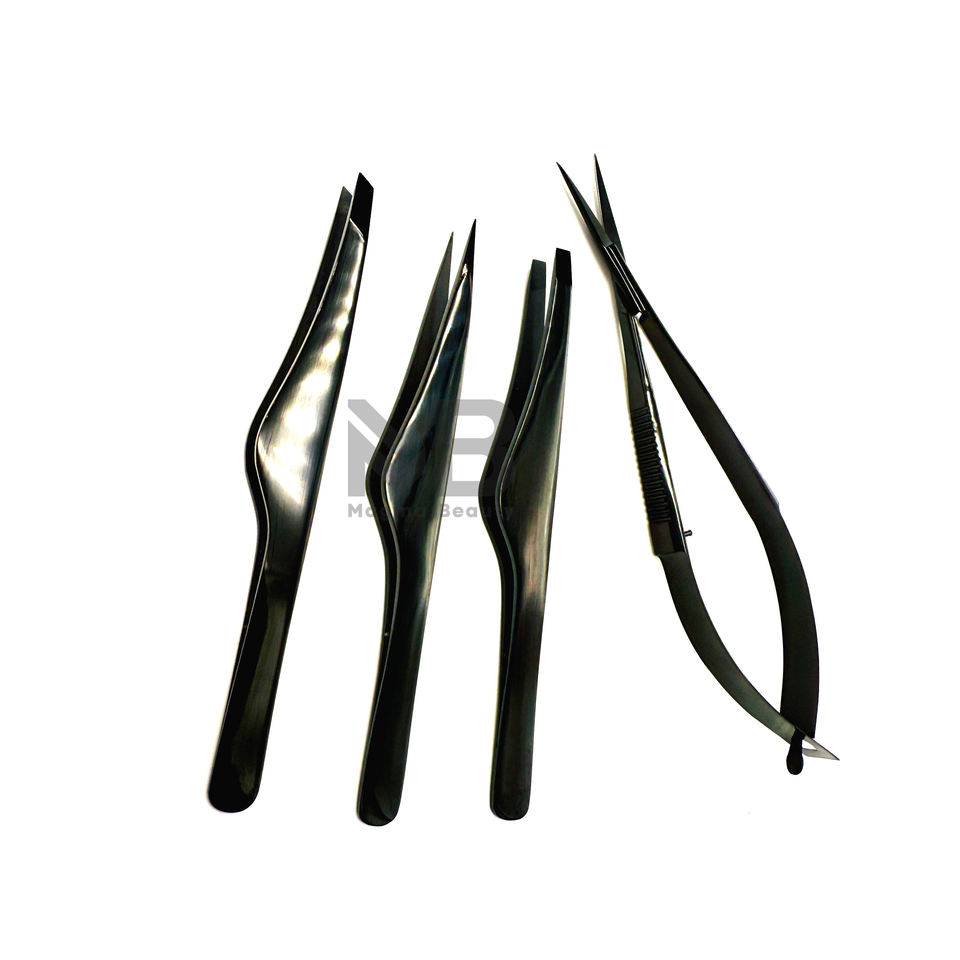 Black Plasma Premium Quality Eyebrow Tweezer Set Of 4 Pieces Private Label Stainless Steel Slanted Eyebrow Tweezers