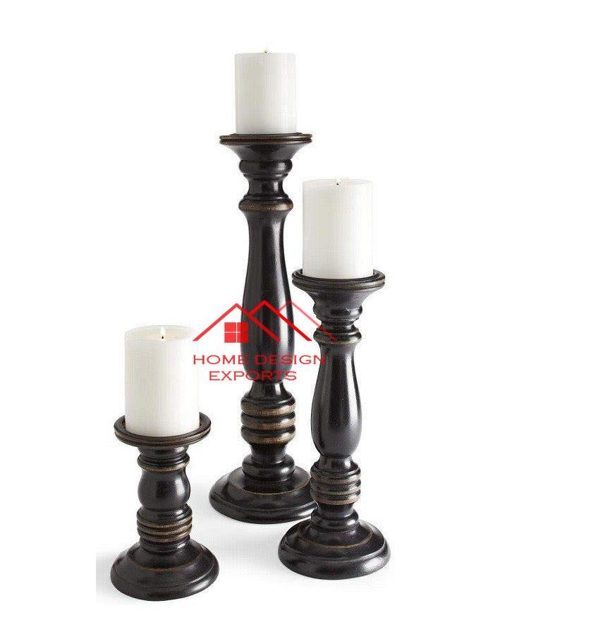 Home Hotel Living room Coffee Decor Black Polished Finished Wood Candle Holder Modern Luxury Tabletop Decor Candle Holder