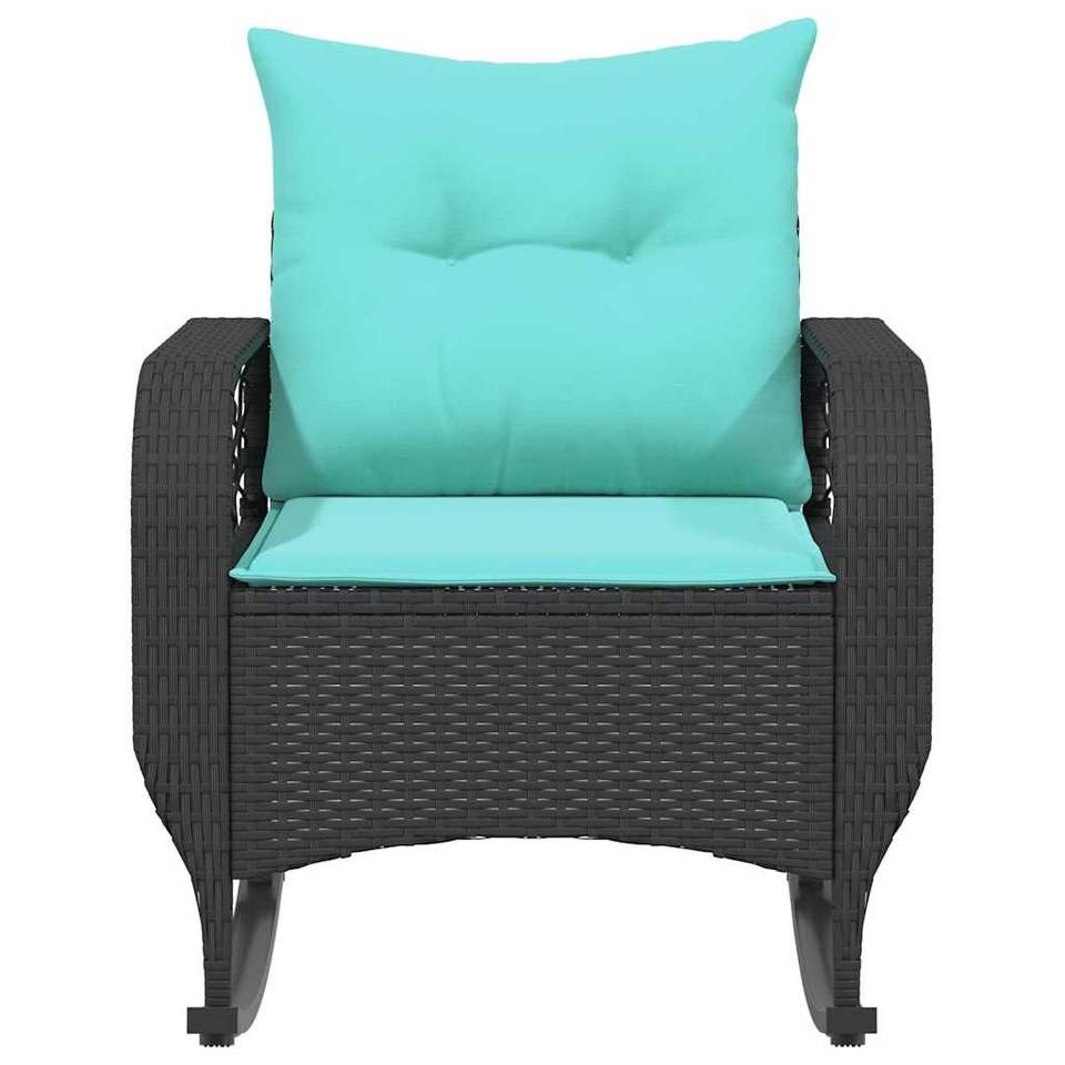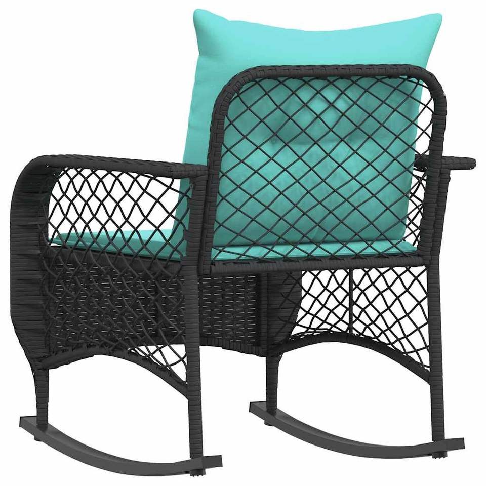 Black Poly Rattan Patio Rocking Chair with Cushions Comfortable Outdoor Furniture