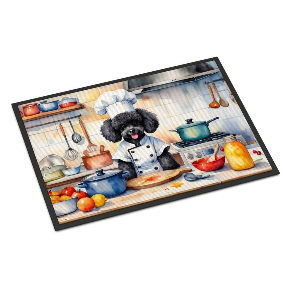 Black Poodle the Chef Doormat Non-Slip Washable Low Pile Indoor/Outdoor Entryway Rug 24H X 36W Front Door Mat