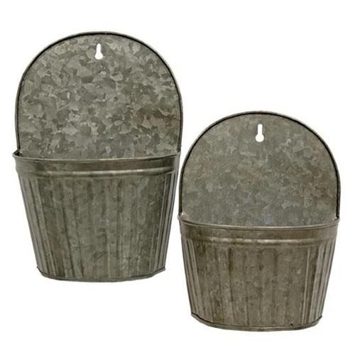 Black Powder Coated Galvanized Metal Wall Flower Vase, Vintage Hanging Planter for Indoor Outdoor Garden and Wedding Decoration