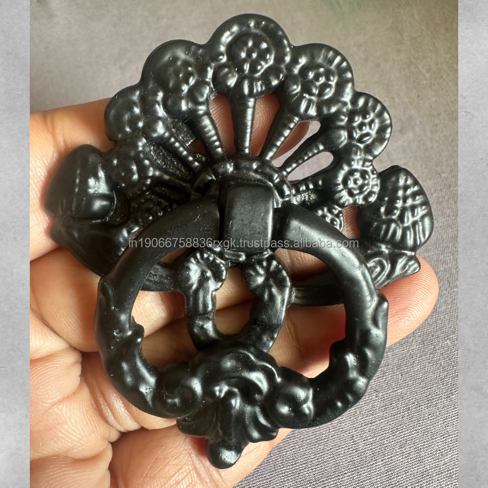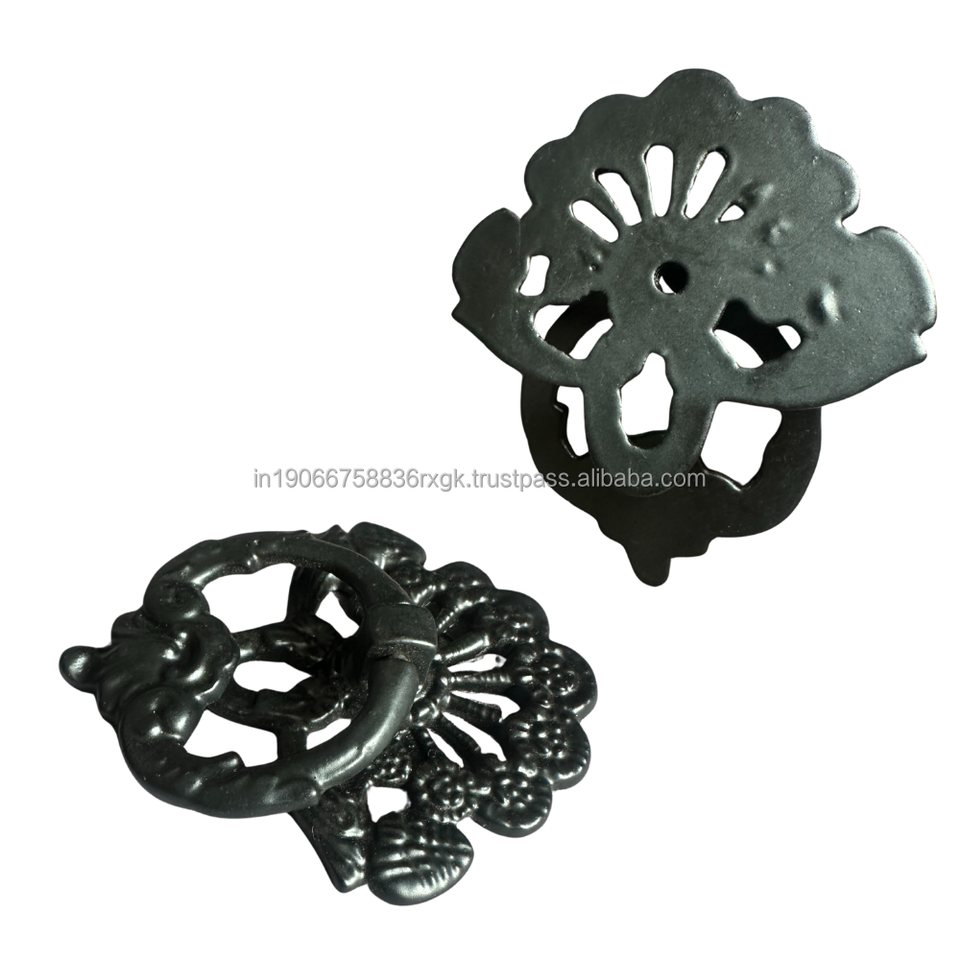 Black Powder Coated Iron Ring Pull Handle Vintage Rustic Kitchen Cabinet Hardware Handcrafted Durable Antirust Ornate Drawer