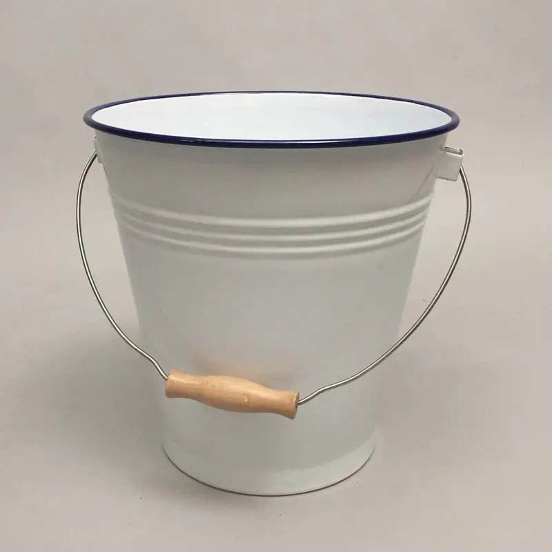 Black Powder Coated Metal Pail Bucket with Wood Handle for Home Balcony Decor Planter Multi Functional Pail Buckets