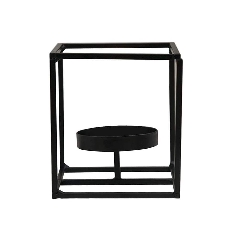Black Powder Coated Metal Tealight Holder for Home Decor, Modern Wire Frame Candle Stand for Living Room and Bedroom Decor