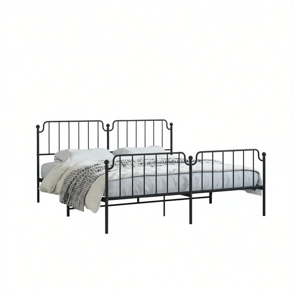 Black Powder Coated Steel Full Size Rectangular Metal Bed Frame Industrial Bedroom Furniture