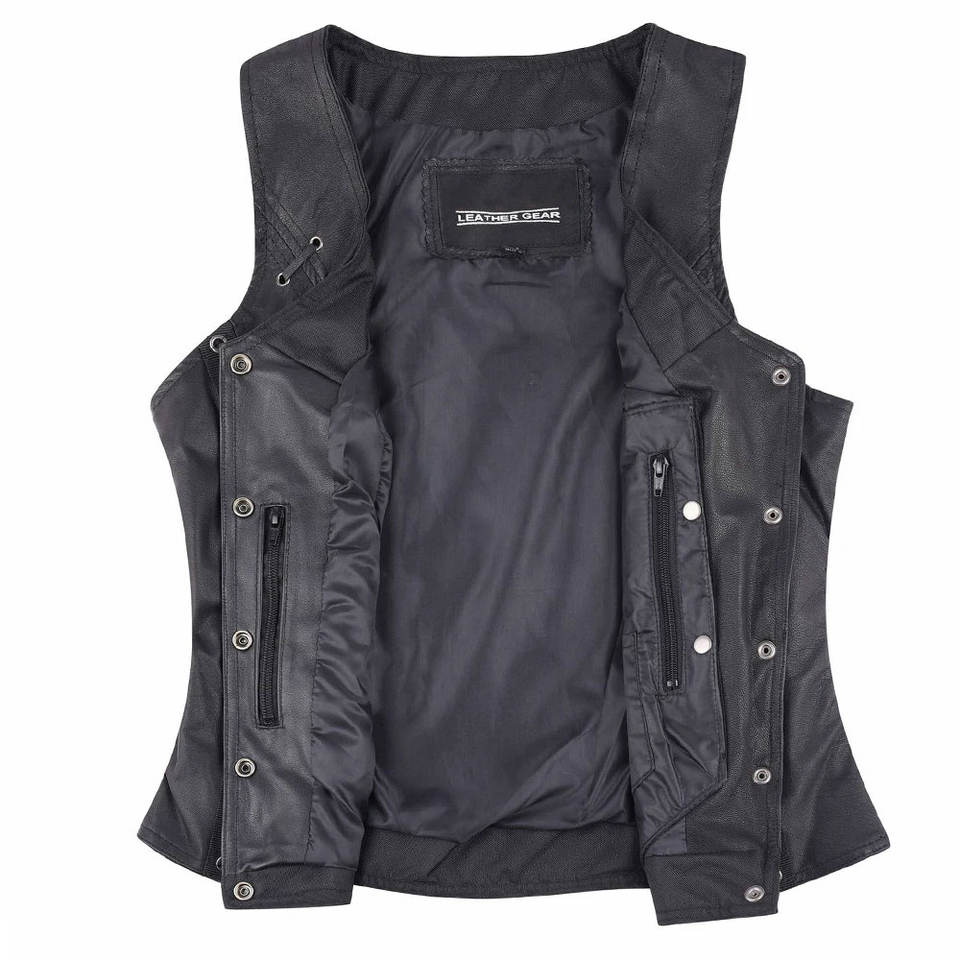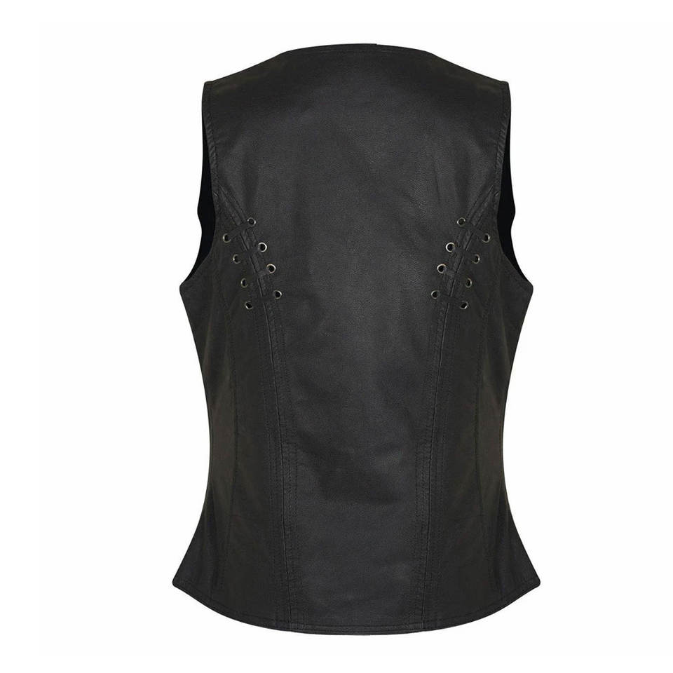 Black Premium Goatskin Cowhide Autumn Vintage Vest 5-Snap Front Closure Zippered Pockets Adjustable Side Laces Soft Satin Lining