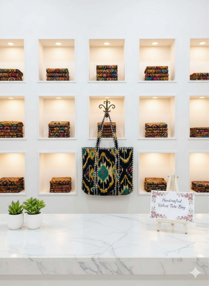 Black Printed Customized Reversible Bohemian Vintage Lady Winter Fashion Velvet Lightweight 18" Shopping Travel Bag Canvas