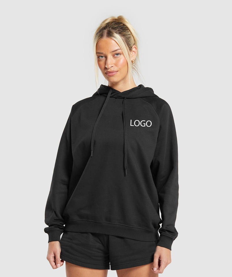 Black Pullover Hoodie 100% Cotton Custom Logo Oversized Streetwear Hooded Sweatshirt Casual Unisex Plain Heavyweight Jumper