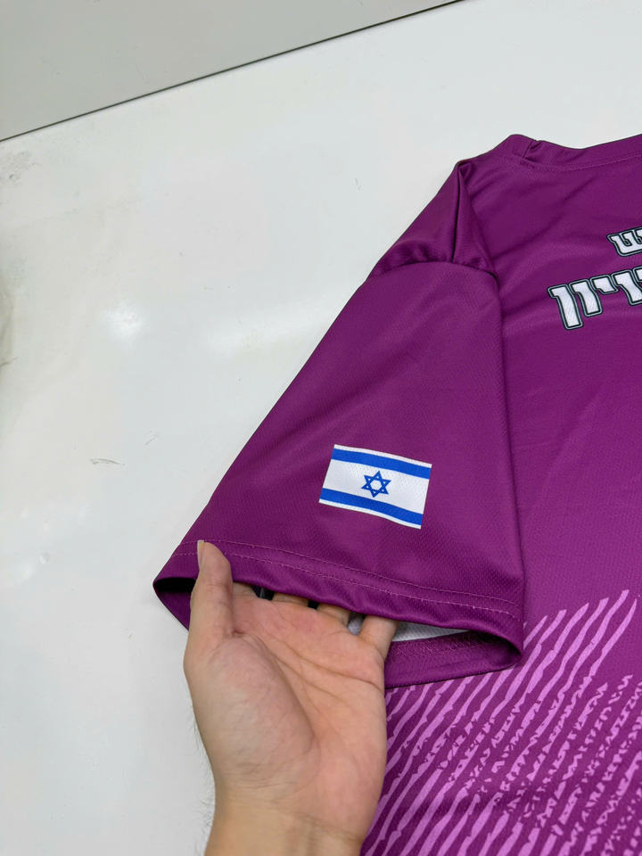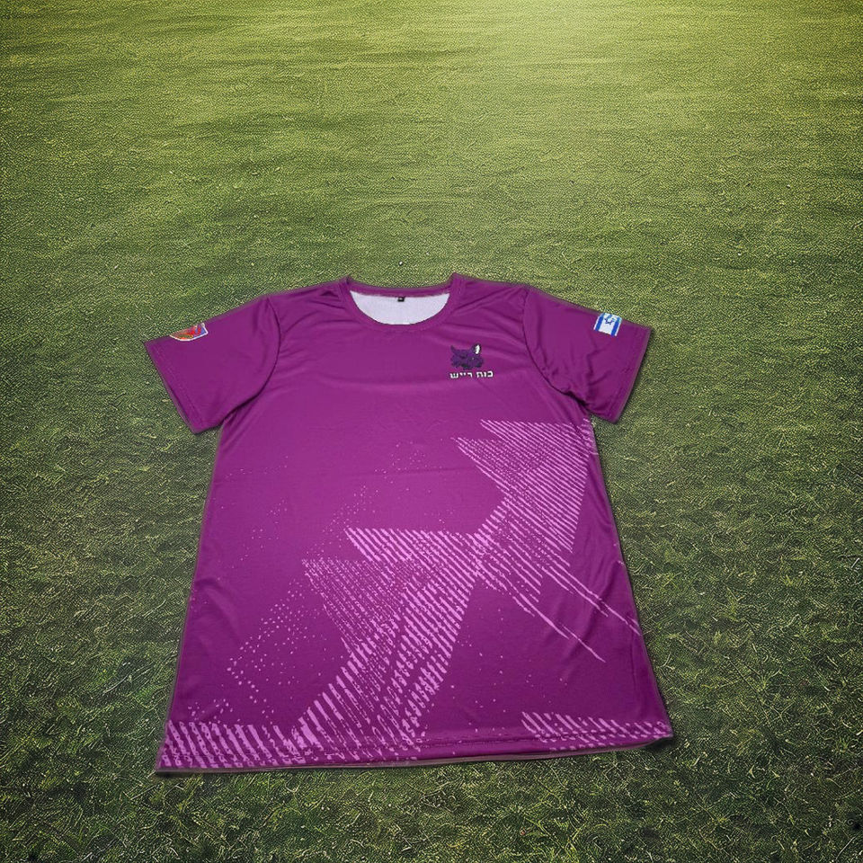 Black/Purple Geometric Print Crew Neck Short Sleeve Sportswear T-Shirt Vietnam Made 100% Polyester Quick Dry Breathable