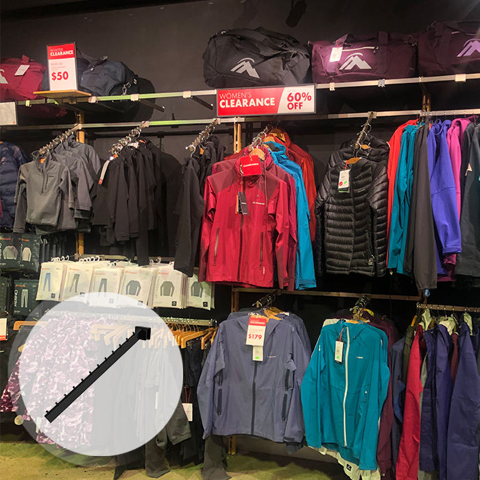 Black Rectangular Metal Bar Face-Out Hanger for Clothing Retail Store Display Stand Swift Courser Display for Shop Shelves