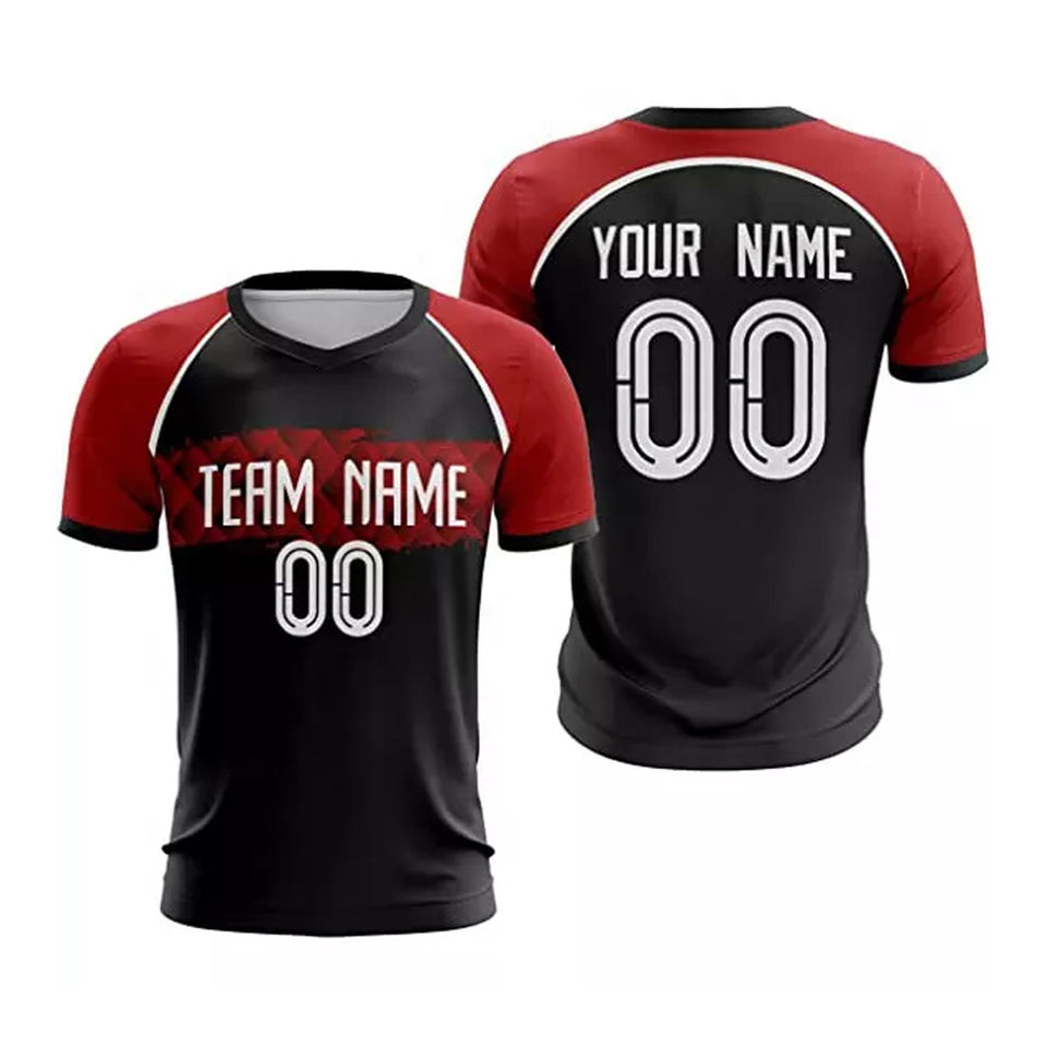 Black & Red 180 GSM Breathable Football Jersey Customizable Soccer Sportswear with Player Names