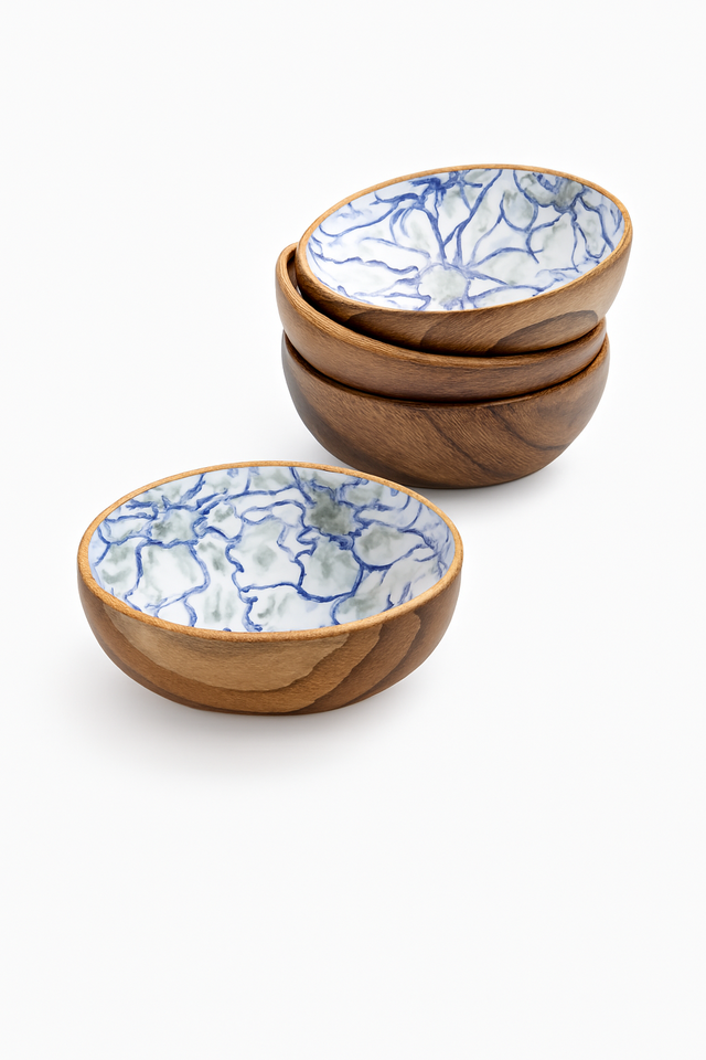 Black Red Floral Enamel Acacia Serving Bowl Handcrafted Premium Wood Tableware for Salad Snacks Dining and Display Decor