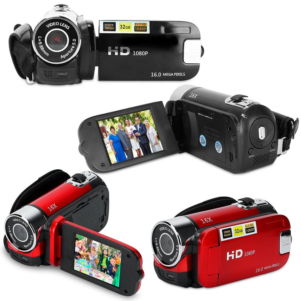 Black-Red Options 1pc HD 1080P Digital Video Camcorder 2.7in 16X Zoom DV Camera 270 Degree Rotation Rechargeable Kid Camera Fill