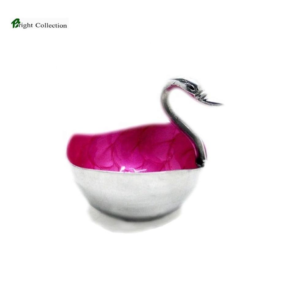 Table Decor metal enamel bowl Enameled Aluminum Bowl Flower Shape Silver & Green Bowl