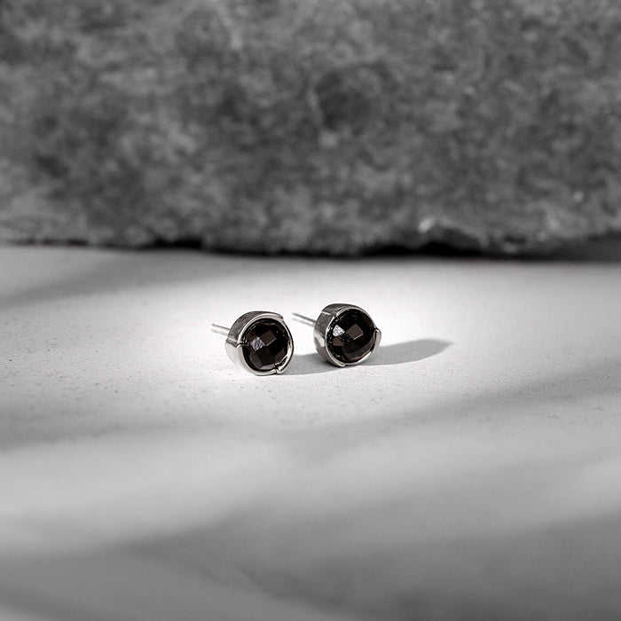 Black Rhodium Stainless Steel Charm Earrings with Sapphire Black Mighty Hoop Design for Him Wedding Occasions