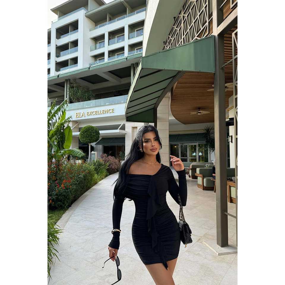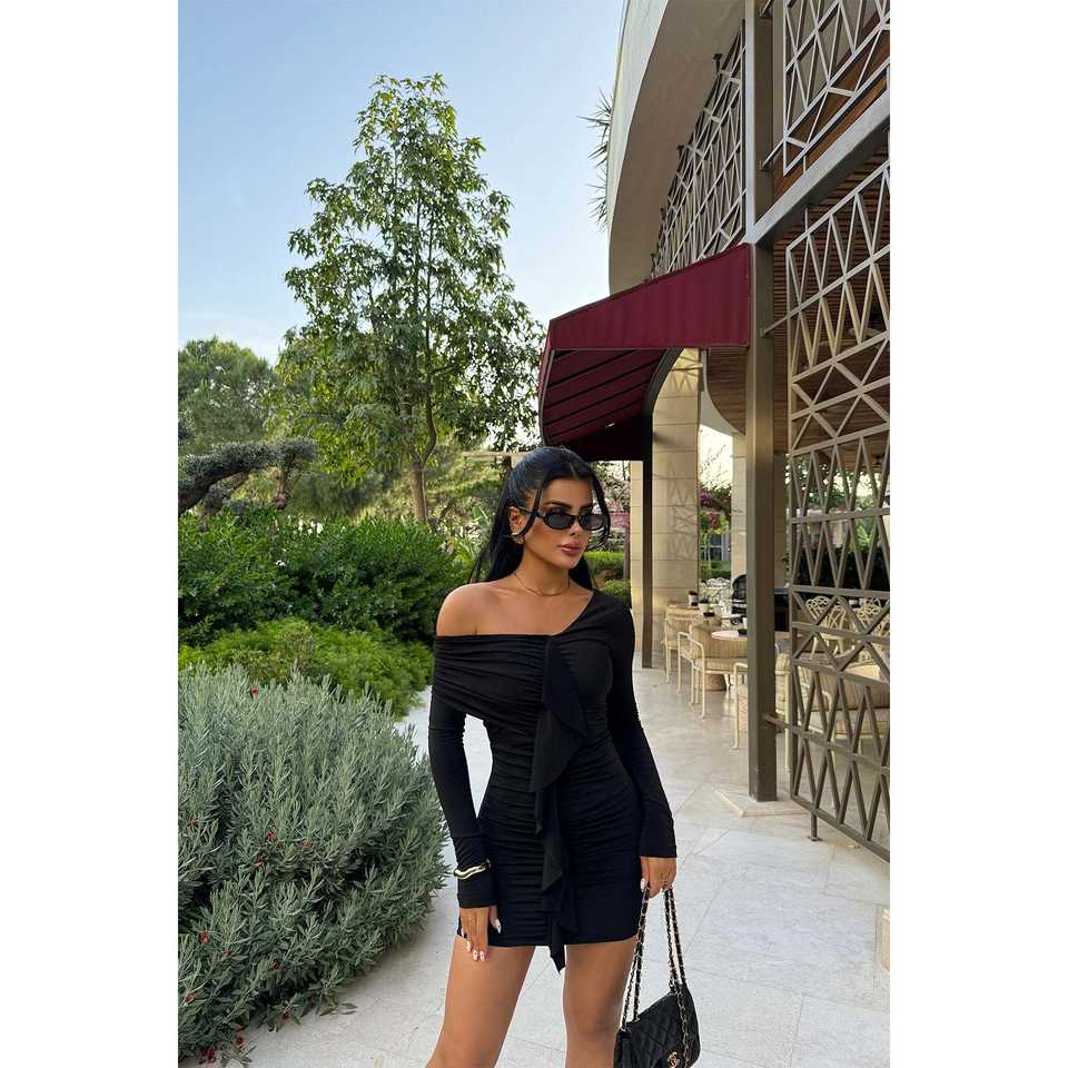 Black Ruffle Detail Club Mini Dress