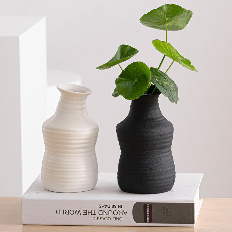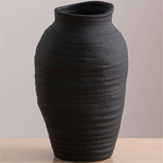Black Rustic Farmhouse Style Small Ceramic Vase With Hydroponic Function for Living Room Desktop Dried Fresh Flower Display