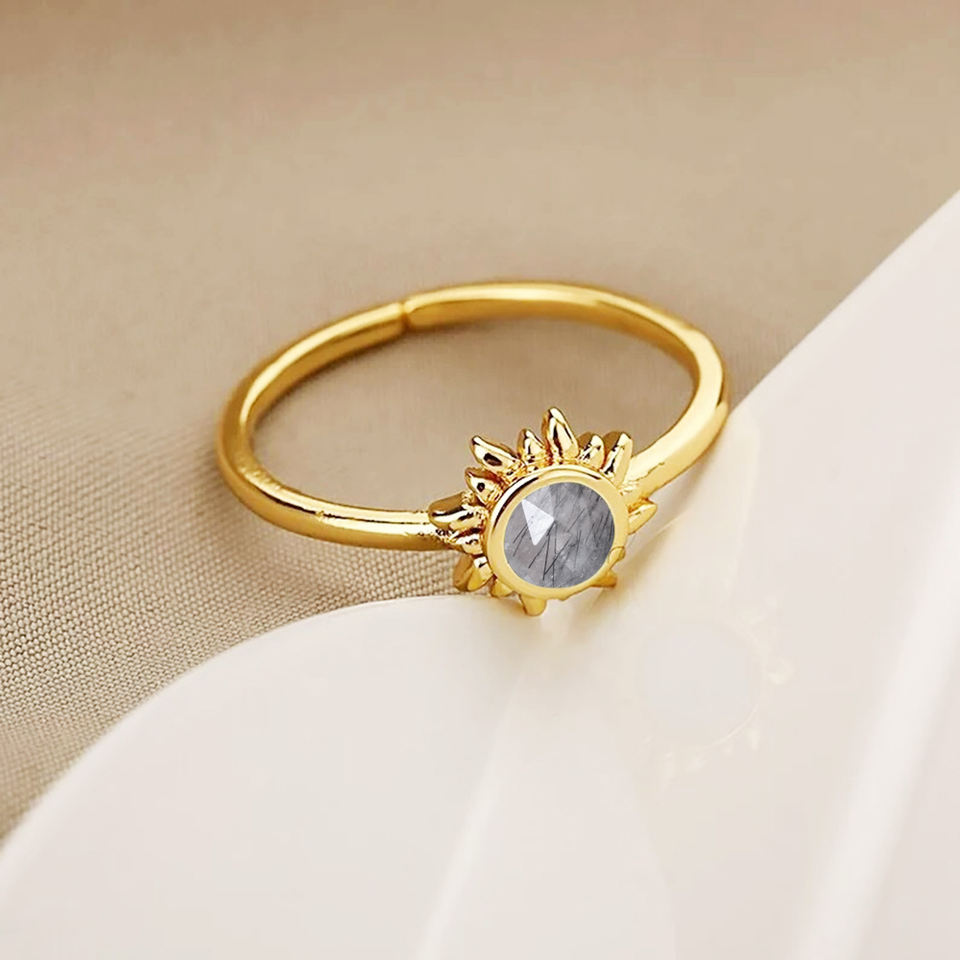 Black Rutile Sun Ring Gold Plated 925 Sterling Silver Handmade Black Rutile Ring Light Luxury Jewelry Celestial Jewelry Supplier