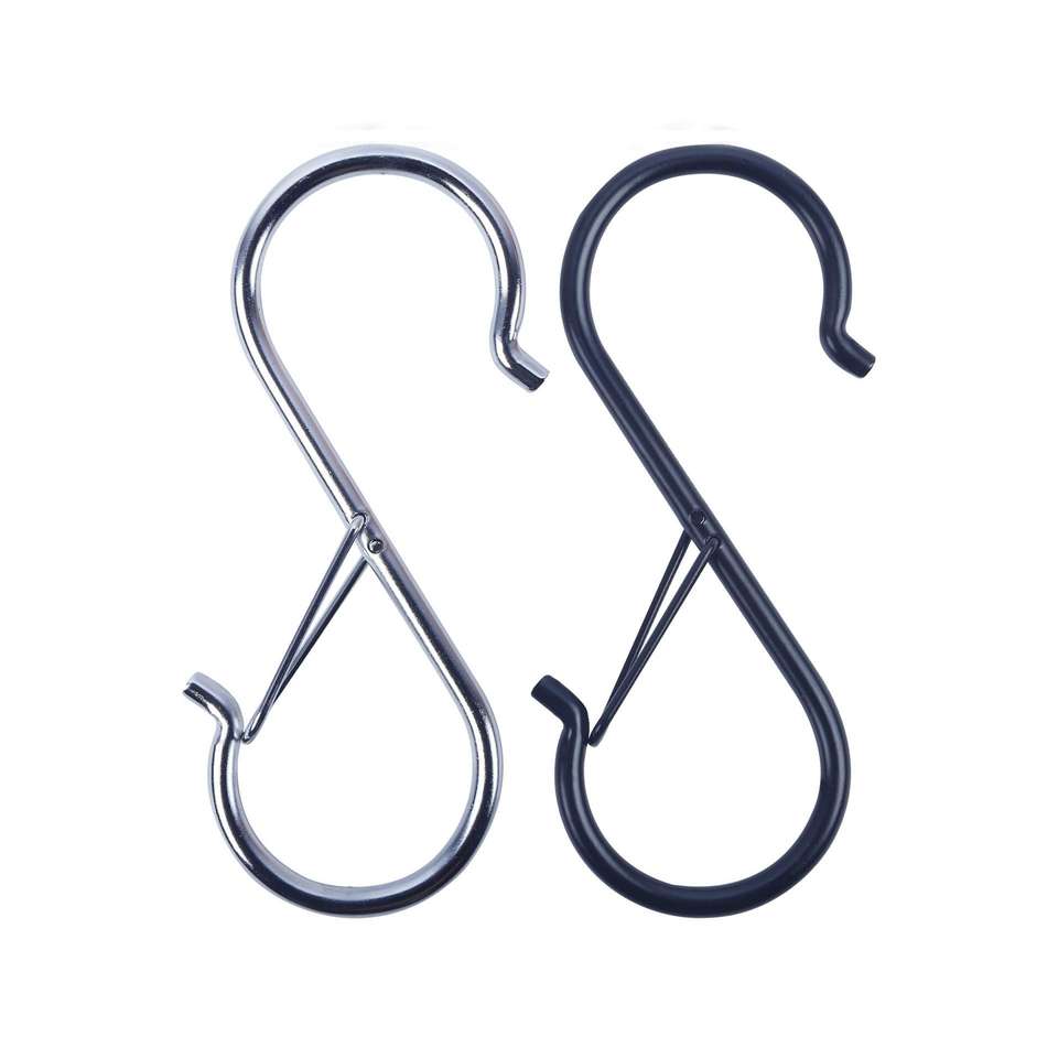 Heavy-Duty 3.5 Inch Black S Shaped Metal Safety Buckle Hooks for Hanging Plants and Closet Use