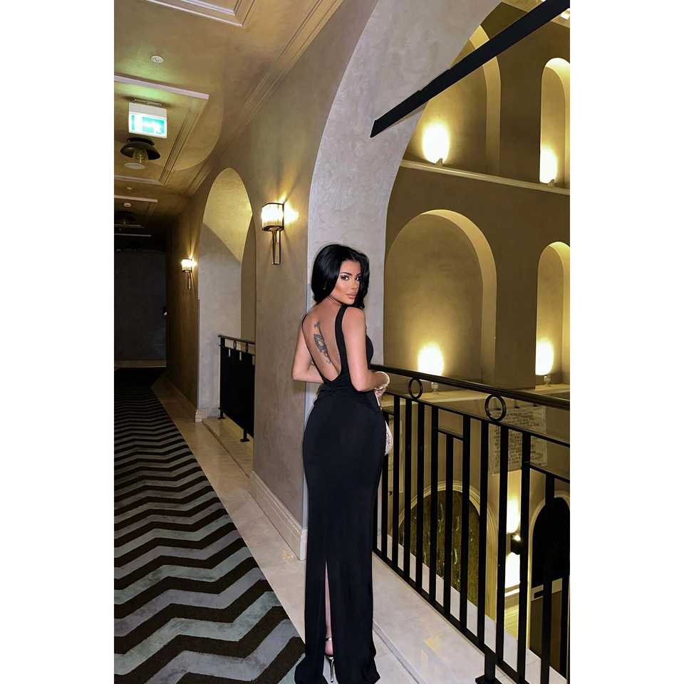 Black Satin Elder Dress Formal Party A-Line Empire Waist Simple Style with Beaded Embroidered Decoration XL Size