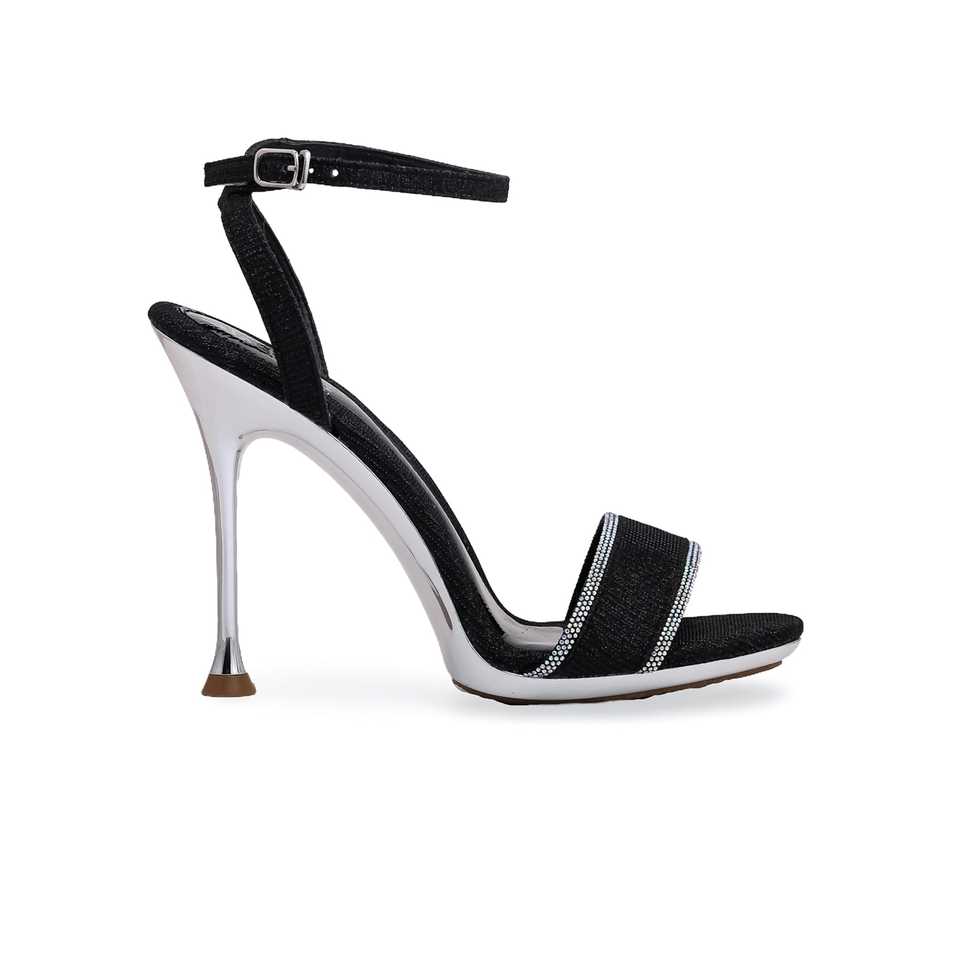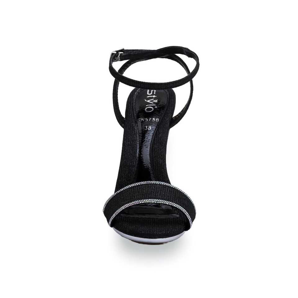 Black Satin Fancy Bridal Heel Sandal FN5758 Open Toe Ankle Strap for Wedding and Party Fashionable Outdoor Heel for Summer