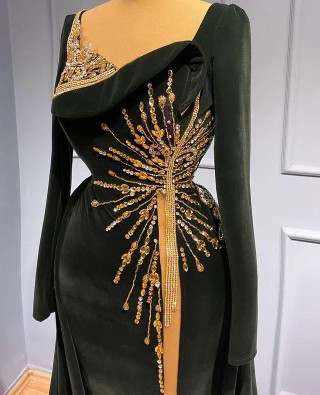 Black Satin Straight Maxi Prom Dress with Short Sleeves Beaded Sexy Side Split Vintage Evening Gown for Formal Events and Party