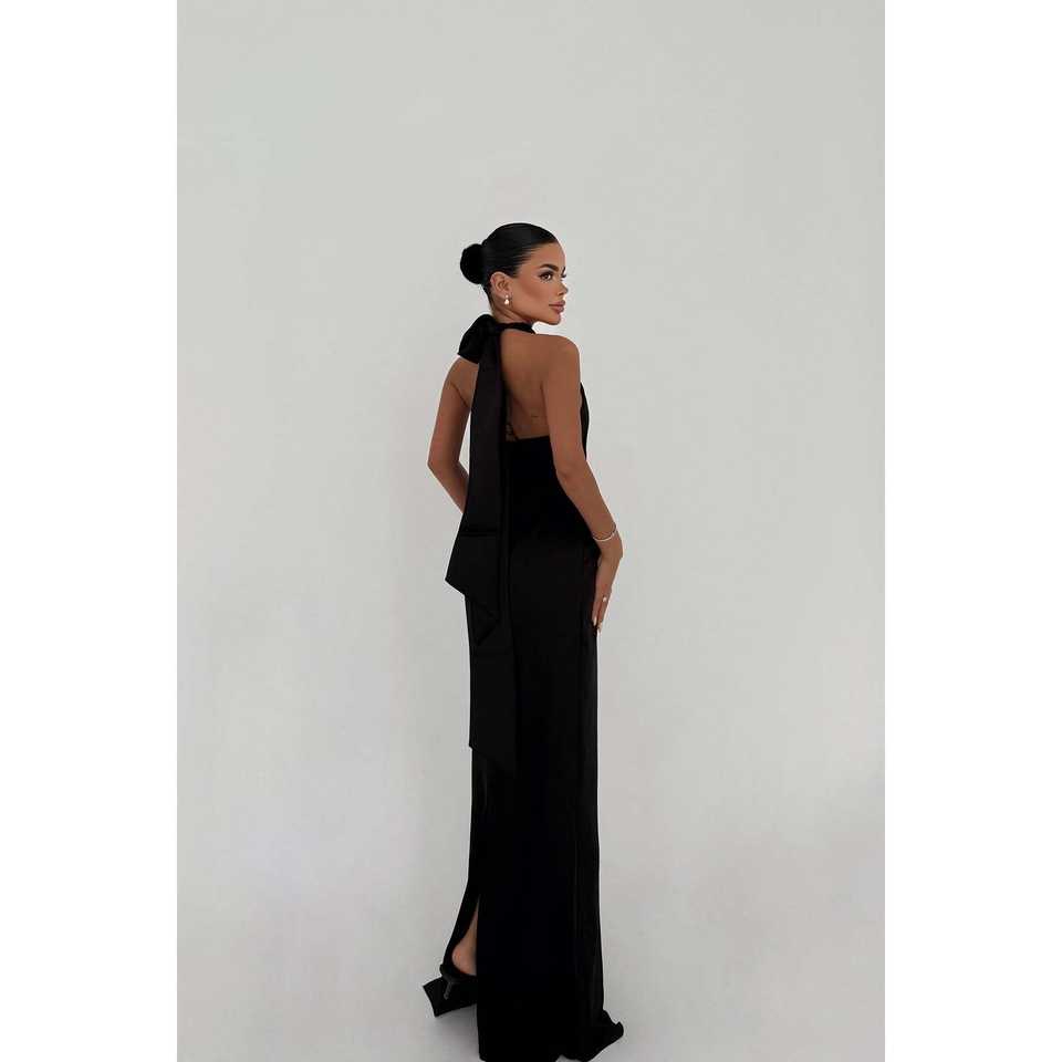 Black Satin Women's Evening Dress Chic Long Ball Gown with Empire Waistline Chic A-Line Floor-Length Prom Dress for Occasions