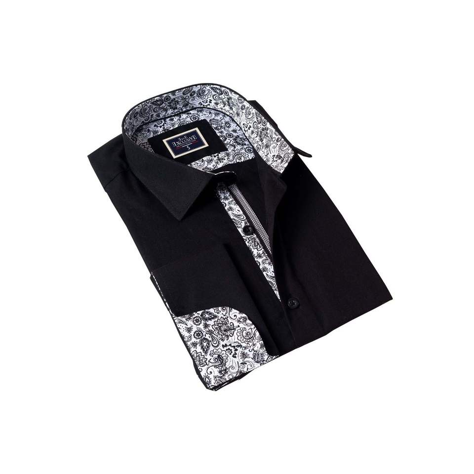 Black Shirt with Shawl Pattern Detail Inside the Collar, French Double Cuff, Cufflinks and Gift Cardboard Box
