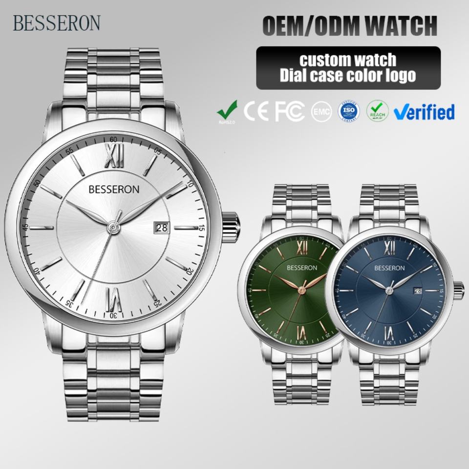 Black Silver Gold Watch case Nice Quality Wholesale Male Stainless Watch Waterproof Quartz Mens Watch