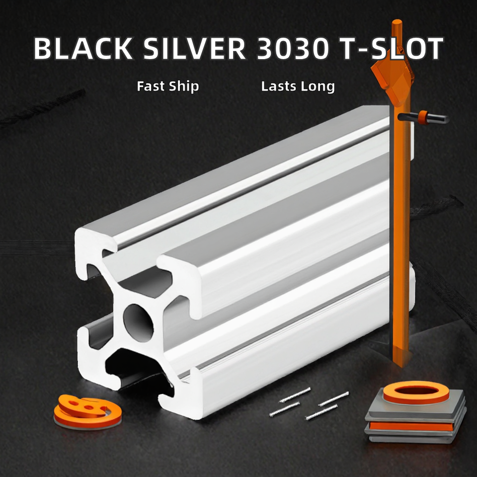 Black Silver Industrial T-slot 3030 Profiles 6000 Series Anodised Aluminium Square China Extrusion 30x30 Bending Kirgen