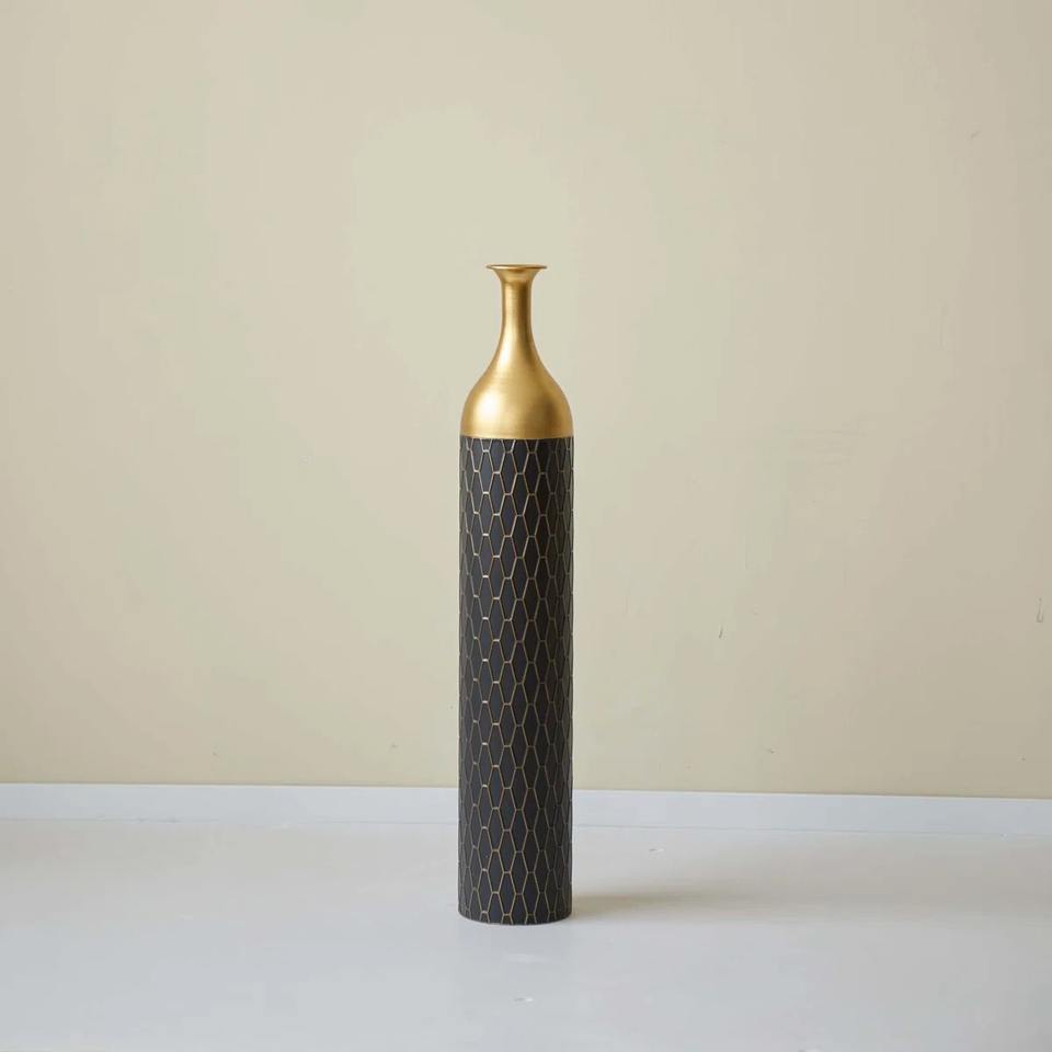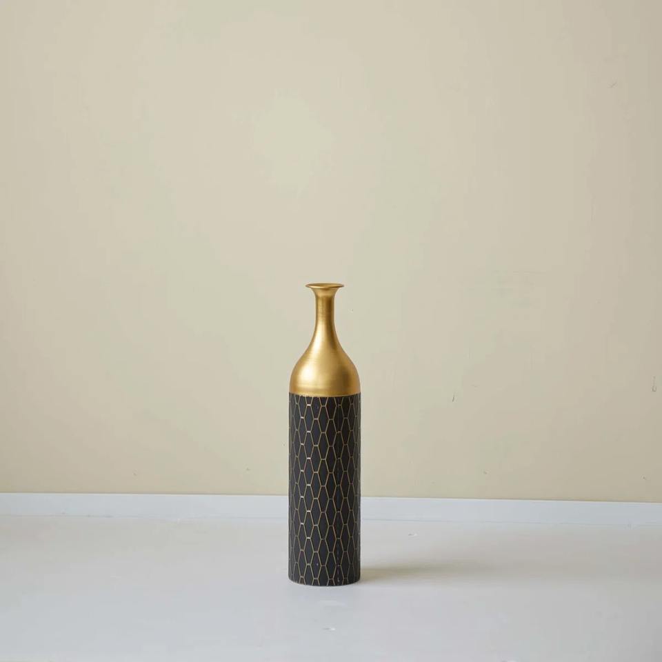 Black Simple Vase With Gold Detailing Perfect For Bedroom Study Desk Living Room Lounge And Creative Gift Or Decorative Use