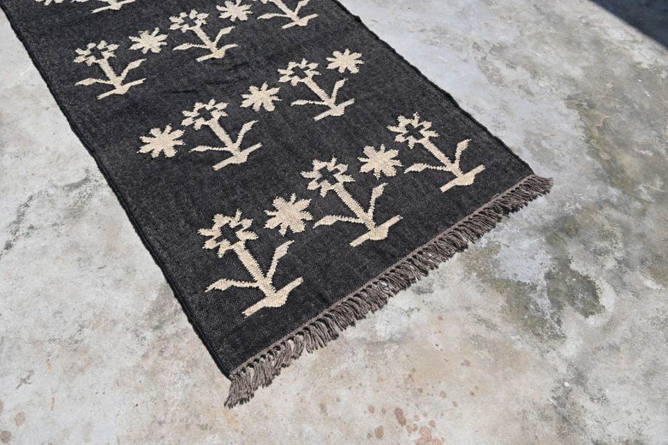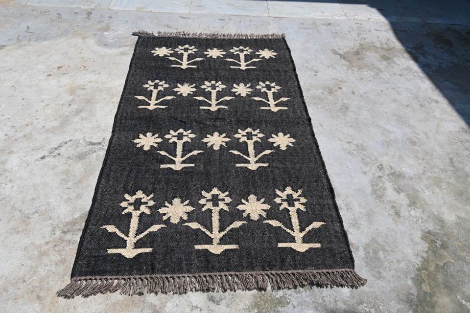 Black Solid Color Modern Machine Made Wool Jute Washable Vintage Kilim Rug for Home Decor